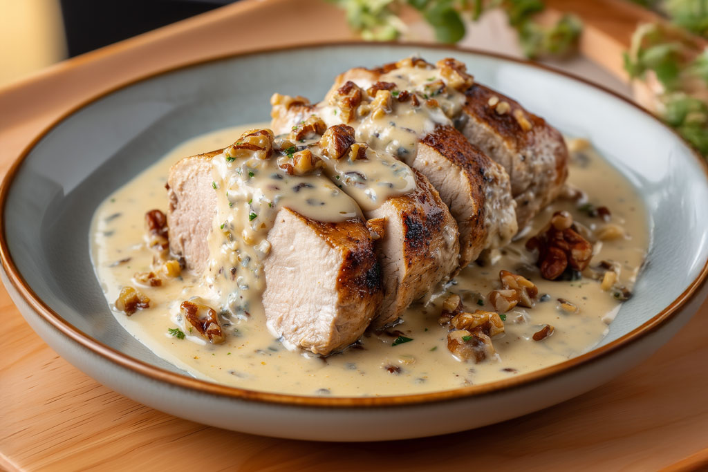 Recette simple et rapide de filet mignon de porc au bleu et noix. Une sauce crémeuse et savoureuse pour un plat réconfortant et fondant.