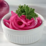 Recette express d’oignons rouges marinés : rapide, facile et savoureuse. Un accompagnement parfait pour rehausser salades, tacos et sandwichs !