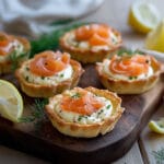 - Disposez des morceaux de saumon fumé sur le dessus de chaque tartelette.