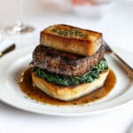 - Déposez le filet de bœuf sur les épinards, puis terminez par une tranche de foie gras sur le dessus.
